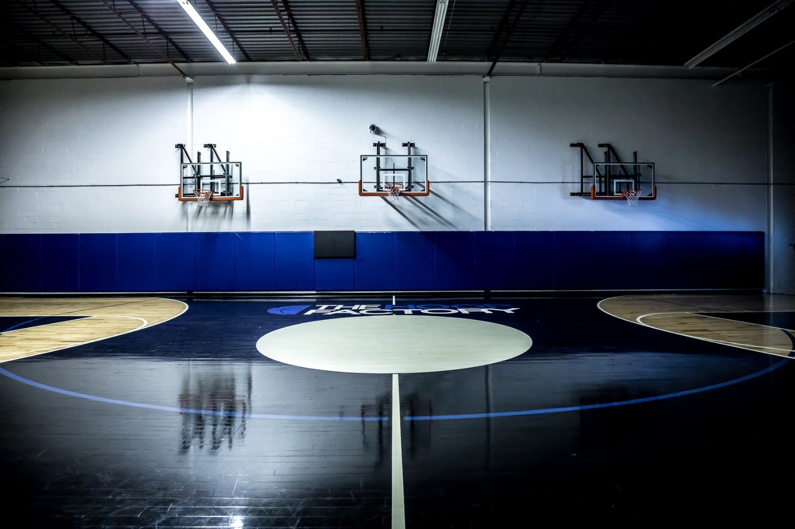 Our state-of-the-art basketball-specific training center features a regulation-sized N.B.A. quality (cushion technology) hardwood floor built for increased performance and safety. The facility features high school, F.I.B.A., and N.B.A. 3-point lines along with 12 N.B.A. regulation hoops, adjustable to 5 ft for players at all levels. Our Sports Tech camera allows for instant feedback and in-depth skill analysis for the improved team and individual performance.
